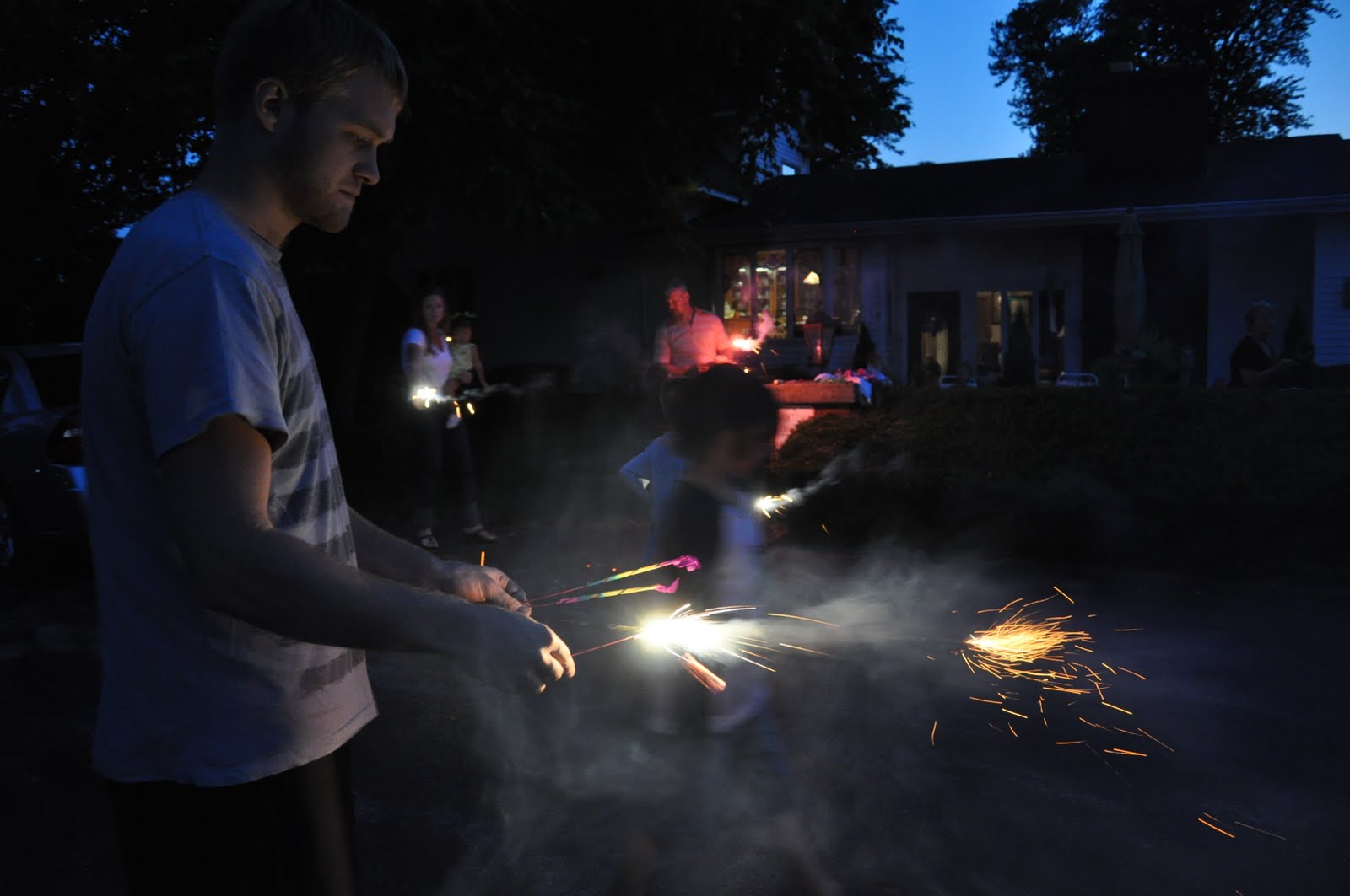 After a few days of hanging out with Adam's family--the rest of my family came for an overnight visit during the holiday weekend.Erica had to return to her home, so it was sad to say goodbye--but we were happy for the time that we had been able to spend with her! It was good to see my dad, since he was unable to come to the airport when we first landed. We ate delicious food and spent time catching up with one another. Just before dark, we headed into town to watch Momence's firework display.