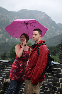 Our friends, Dave and Lauren, were amazing translators. We've been in China the same amount of time, but they have retained a lot more Mandarin than us. Honestly, we probably wouldn't have gone if they hadn't mentioned they were also going--I think we might have invited ourselves along--just because trying to figure out what to do, where to go, who to talk to, what to pay is all very overwhelming when you have a baby whose needs are nearly incessant. As we were checking out, they were able to bargain for someone to drive us to the sites we wanted to see. They got a good price considering the rain, and the fact that we would be those driver's only business that day. Somehow, Lauren understood from their Chinese that main Great Wall site she had been to before was closed. There was another site that the drivers knew of though. So, we piled into two vehicles and set off.